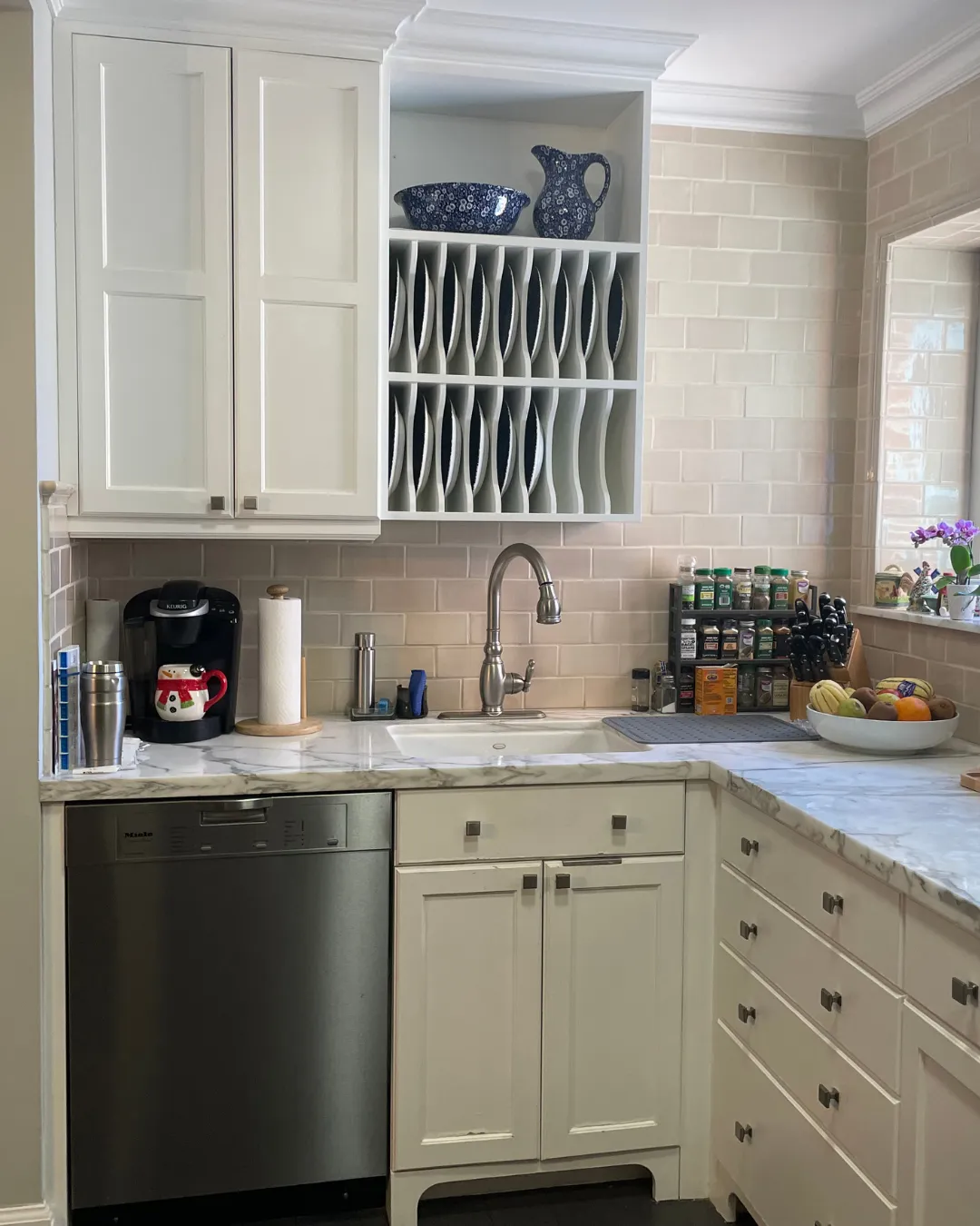 Cabinets, countertops, backsplash, lighting, and layout upgrades.